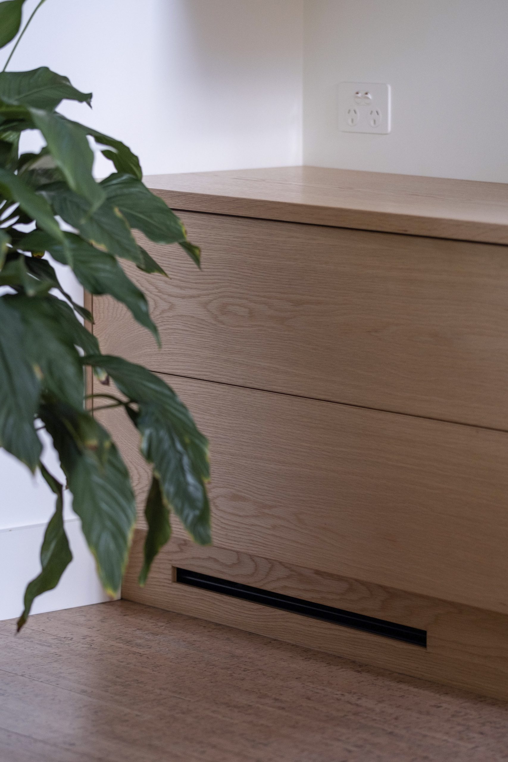 While the hydronic heat pump was installed on the outside of the house, the unit and the plant room fitted comfortably under the house allowing us to duct into each room from a large unincumbered area.