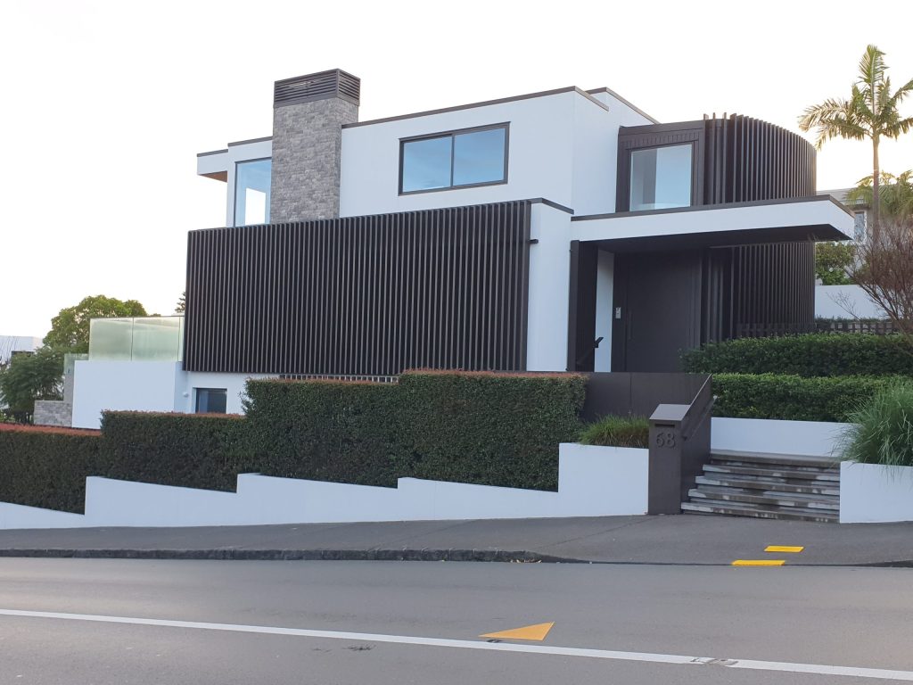 Perched high above the beachside suburb of St Heliers, this striking corner property enjoys sweeping views across the Hauraki Gulf to Rangitoto Island—a setting as spectacular as the home itself.