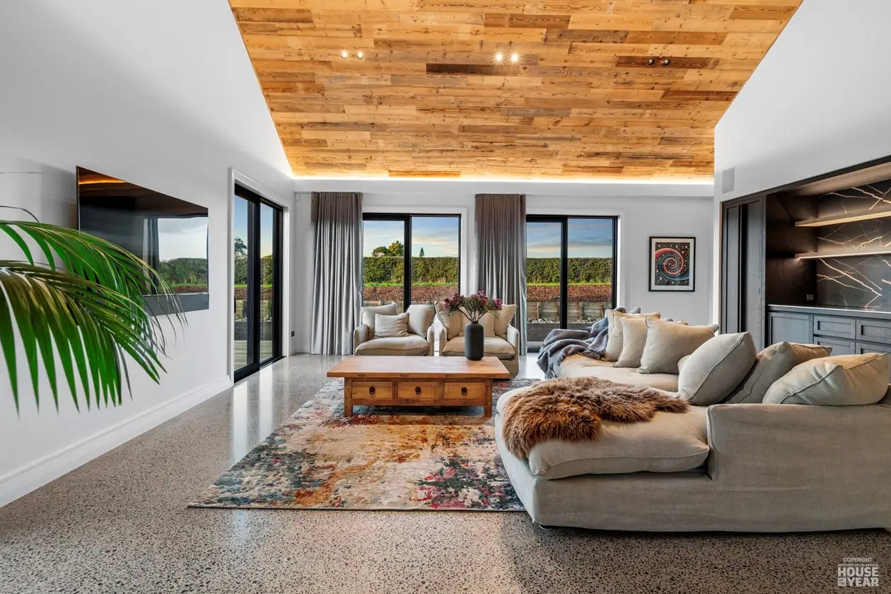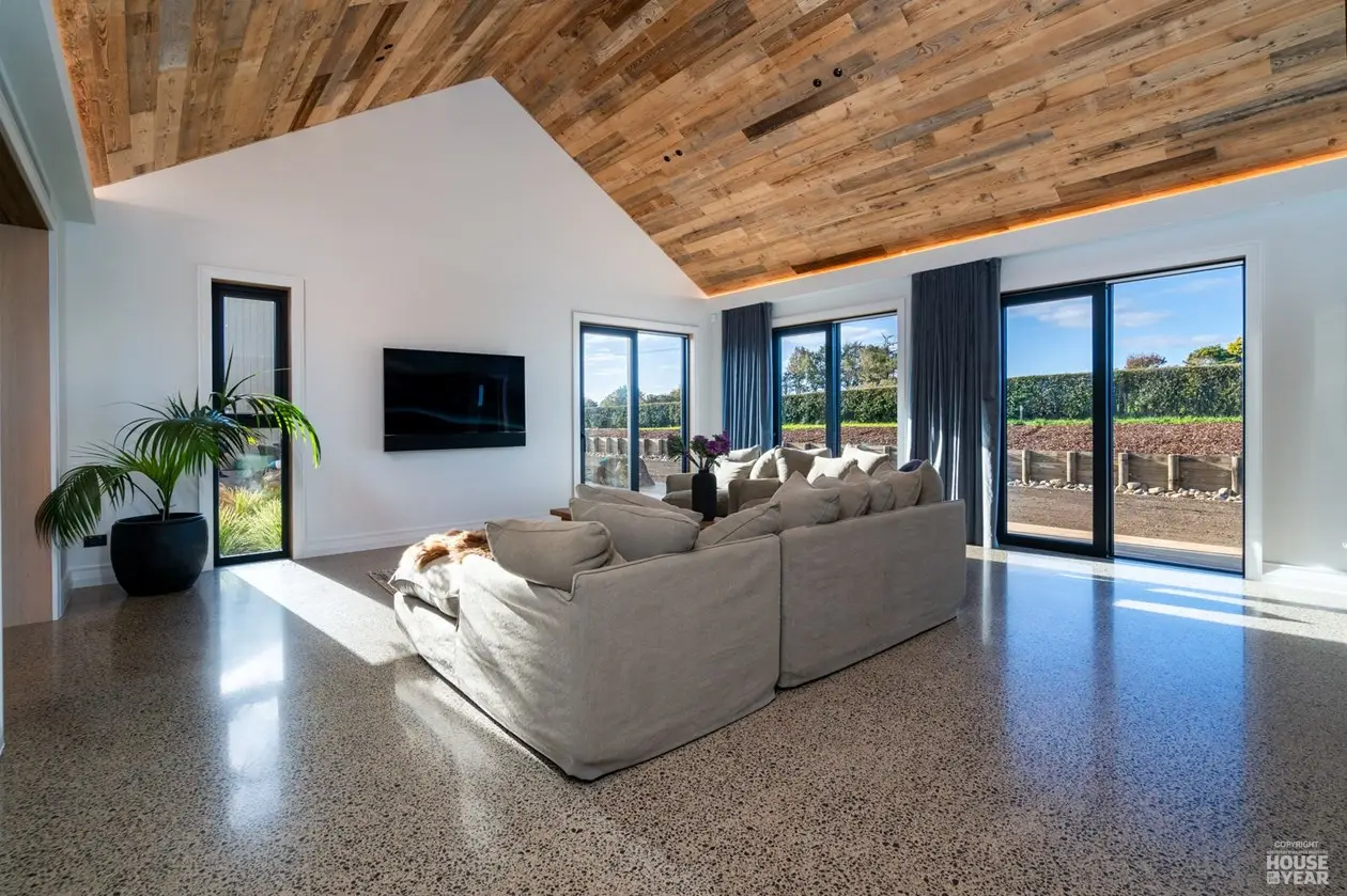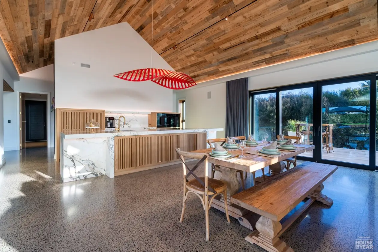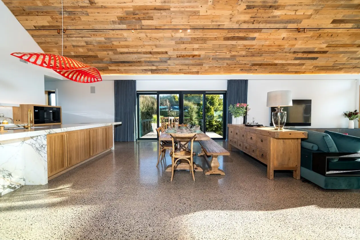 Nestled in the vast country side of Mangatawheri, Nadene’s home is a warm and inviting space, where modern fixtures seamlessly blend with a rich palette of Tasmanian oak, reclaimed timber and charred wood.