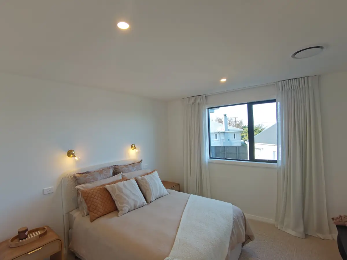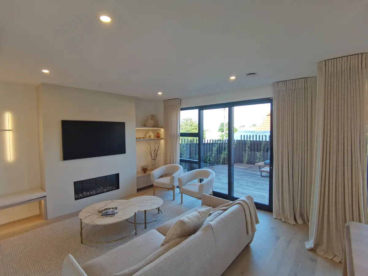 Designed by the acclaimed Jessop Architects, this bold, modern residence makes a statement with its crisp white façade, unfolding across three sculpted levels. The architecture wraps cleverly around outdoor spaces, offering both shelter and perfectly framed views of the harbour—seamlessly blending form, function, and lifestyle.