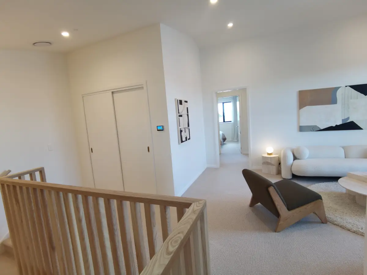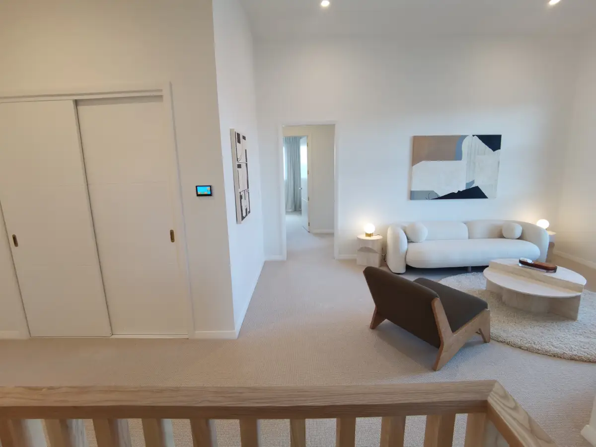 At the forefront of the design, facing Campbell Road, is the Premium Specification: a beautifully crafted two-level home that exudes style and sophistication. The upper floor features three spacious bedrooms, a media room, and a well-appointed bathroom. The lower-level impresses with a master suite complete with ensuite and walk-in-robe, a guest powder room, and a light-filled open-plan kitchen, dining, and living area designed for seamless modern living.