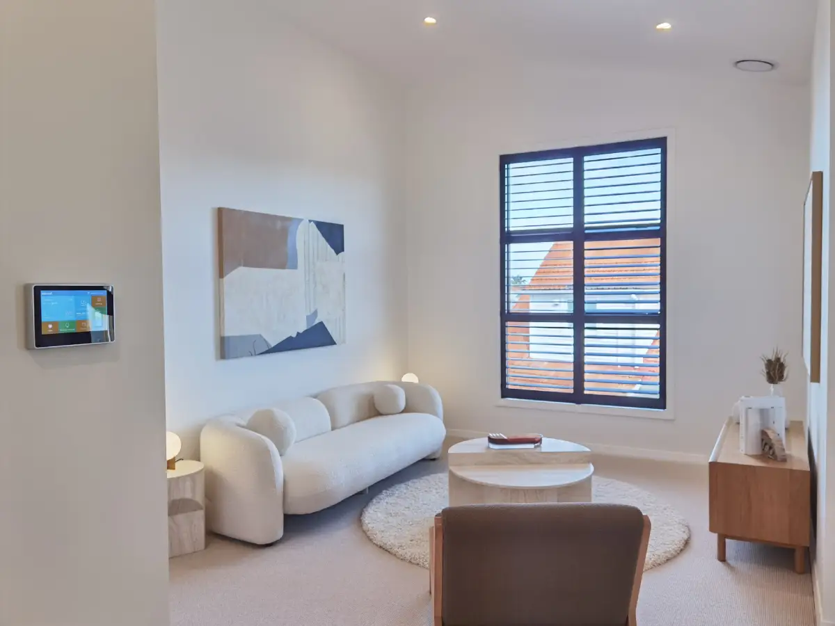 Nadene wanted a sustainable home based on high-performance passive construction principles, and Harrison Lane delivered. More than 80% of the home’s energy is produced by an 8.2kW solar array with storage. Materials were chosen for their sustainability and energy efficiency, such as the insulated concrete floor and PVC window system. Extensive smart home technology controls every part of the home’s environment.