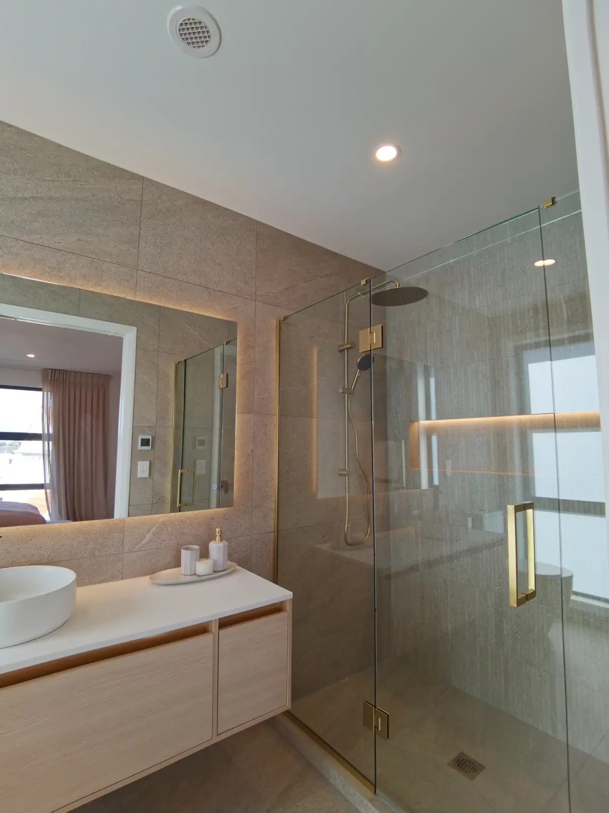 Using a discreet service shaft, we extended the ventilation to the main bedroom and living space below, with targeted extraction from the ensuite, bathroom, and WC to complete a smart, silent, and efficient air management system—perfectly aligned with the home’s modern functionality and premium finish.